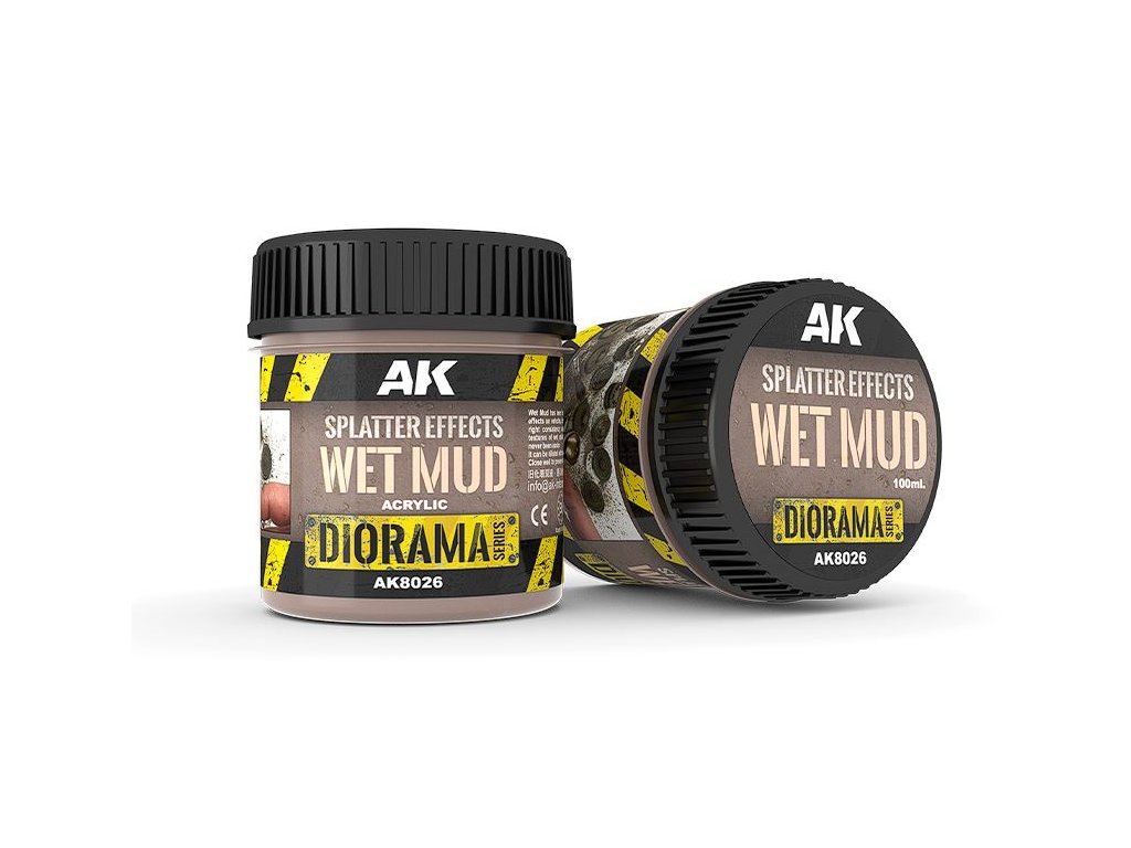Splatter Wet Mud byl vytvořen pro vytváření efektů rozstřikování mokrého bláta na vozidla, dioráma a viněty. Wet Mud má správnou konzistenci, snadno se zpracovává štětcem, vytváření realistických textur mokrého rozstříknutého bláta na spodních površích vozidla nebylo nikdy jednodušší. Ideální konečné úpravy povrchu s proměnlivou texturou pro váš model nebo terén. Lze nastříkat pomocí štětce a nasměrovat proud vzduchu vašeho airbrush. Pro zlepšení tekutosti lze ředit vodou nebo akrylovým ředidlem.