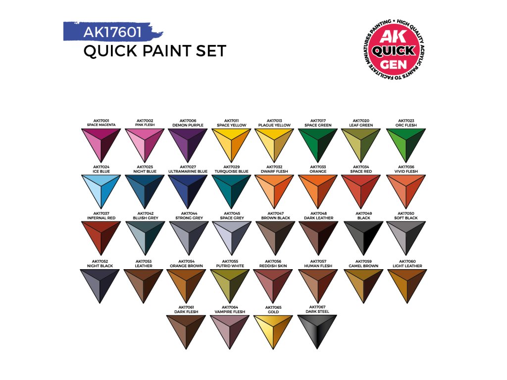 AK Interactive: Quick Gen - Quick Paint Set (36 barev a 2 štětce)