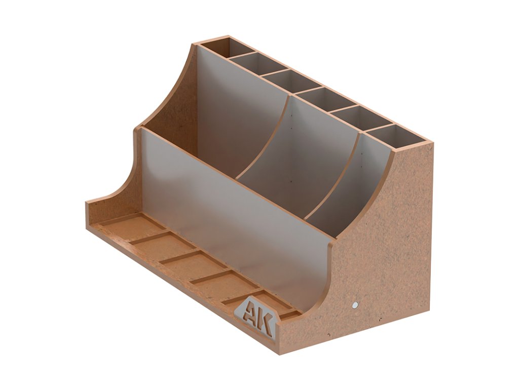 Prostory navrženy s ohledem na potřeby modeláře, s předním prostorem pro standardní hranaté kontejnery, jaké vyrábějí například Tamiya, Gunze, AK atd.
