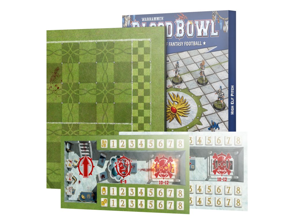 Rules for using each side of the pitch in your games of Blood Bowl are included – you can also find these rules in Spike! Journal: Issue 21 or in the High Elf Team Reference Card Pack, both of which are available separately.