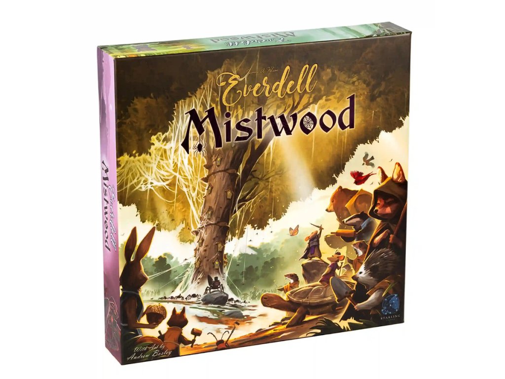 Mistwood je rozšíření pro půvabnou budovatelskou hru Everdell (Divukraj), které přichází především s modulem pro sólo hraní a hru dvou hráčů v podobě ničemné pavoučice, která plánuje pomocí svých pavoučích mláďat ovládnout les.