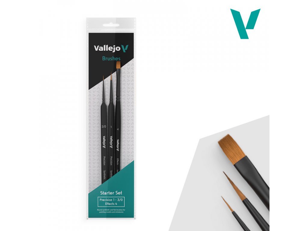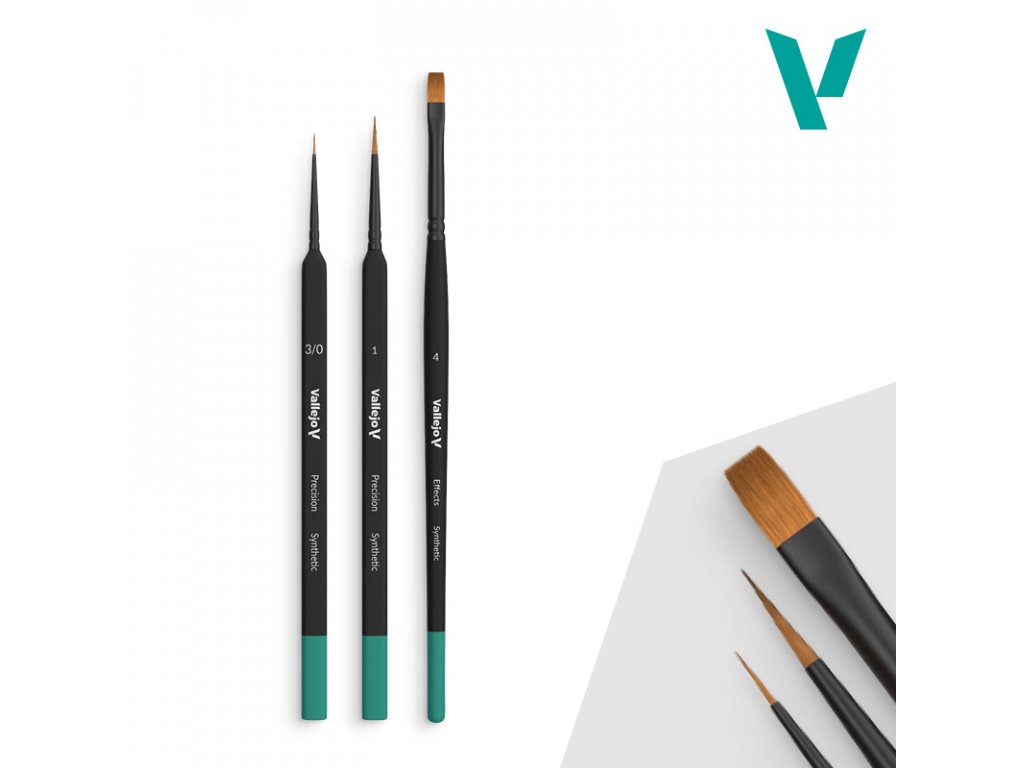 Set Štětců Vallejo Precision B03990 Starter Set (Round No.1, Triangular 3/0, Flat Synth. No.4)